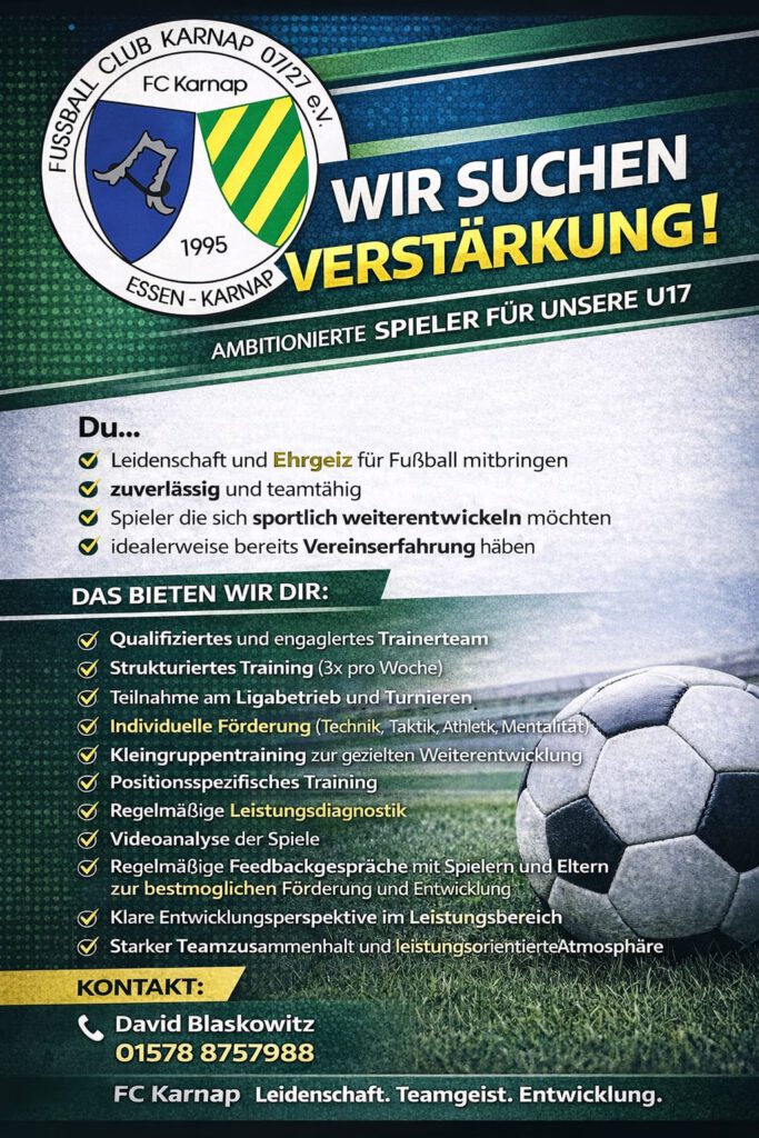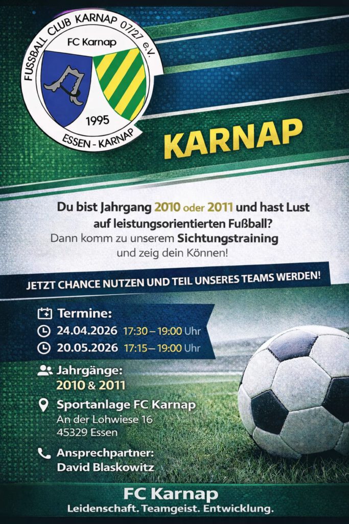 ⚽📢 Einladung zum Pfingstturnier des FC Karnap 07/27 e.V.📢⚽ Der FC Karnap 07/27 e.V. lädt herzlich zum Pfingstturnier 2026 ein! Drei Tage voller Fußball, Teamgeist und
